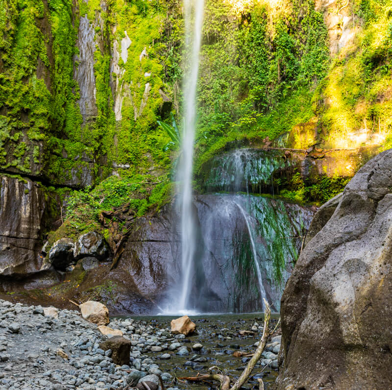 The cliffs and rocks around Napuru are remnants of Mount Meru’s volcanic activity, forming dramatic geological features that are both educational and visually stunning. The waterfall plunges approximately 78 meters into a shaded gorge, carved from layers of volcanic ash and hardened basalt formed during ancient eruptions.